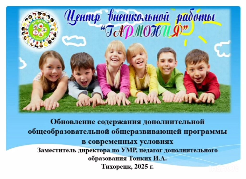 «Обновление содержания дополнительной общеобразовательной общеразвивающей программы в современных условиях» - Тонких Ирина Александровна, заместитель директора по УМР, педагог дополнительного образования МБУ ДО ЦВР «Гармония» г. Тихорецка МО Тихорецкий район