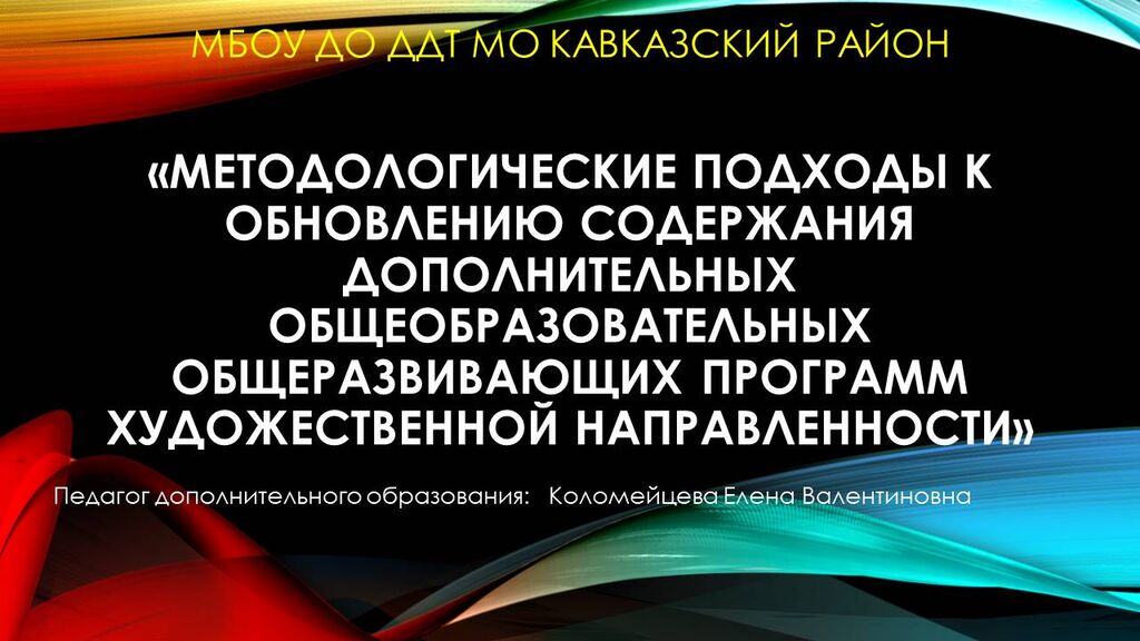 «Методологические подходы к обновлению содержания дополнительных общеобразовательных общеразвивающих программ художественной направленности» - Коломейцева Елена Валентиновна, педагог дополнительного образования МБОУДО ДДТ МО Кавказский район