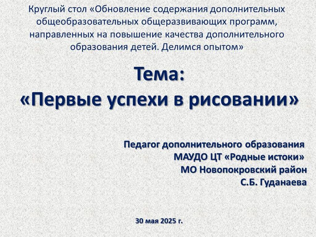«Первые успехи в рисовании» - Гуданаева Светлана Борисовна, педагог дополнительного образования МАУ ДО Центр творчества «Родные истоки» станицы Новопокровской МО Новопокровский район